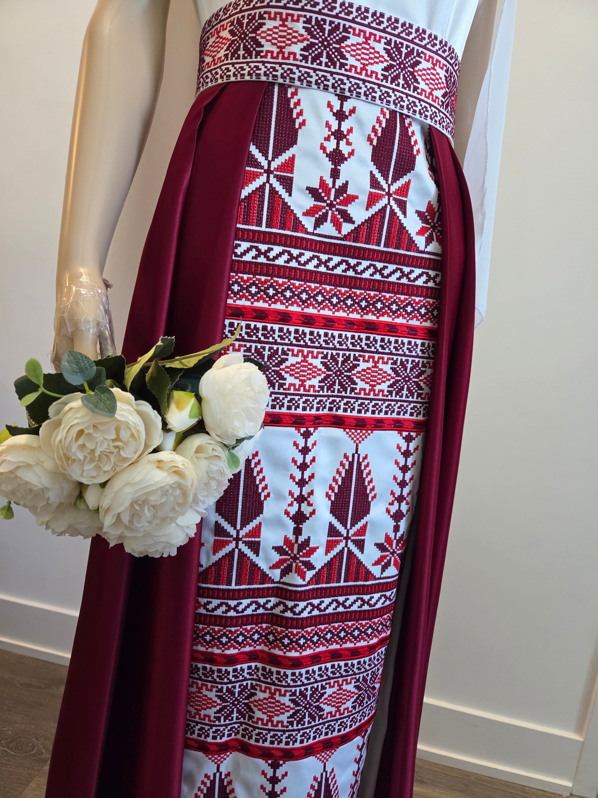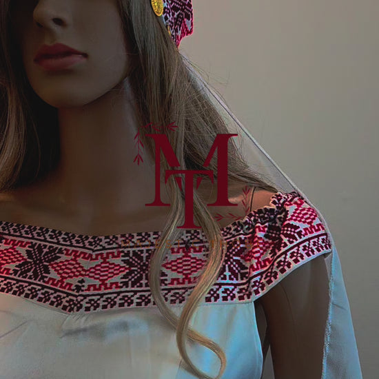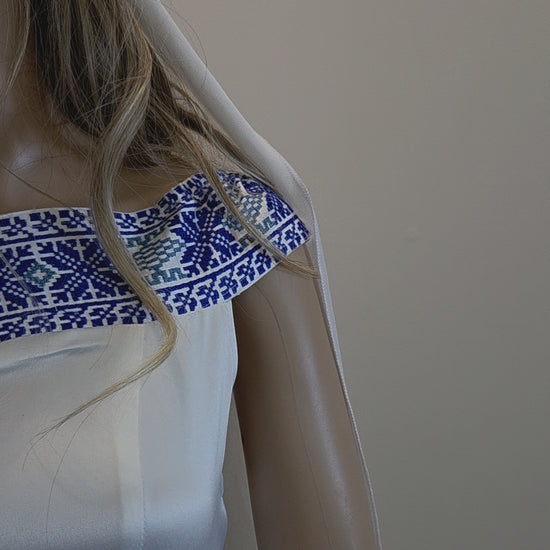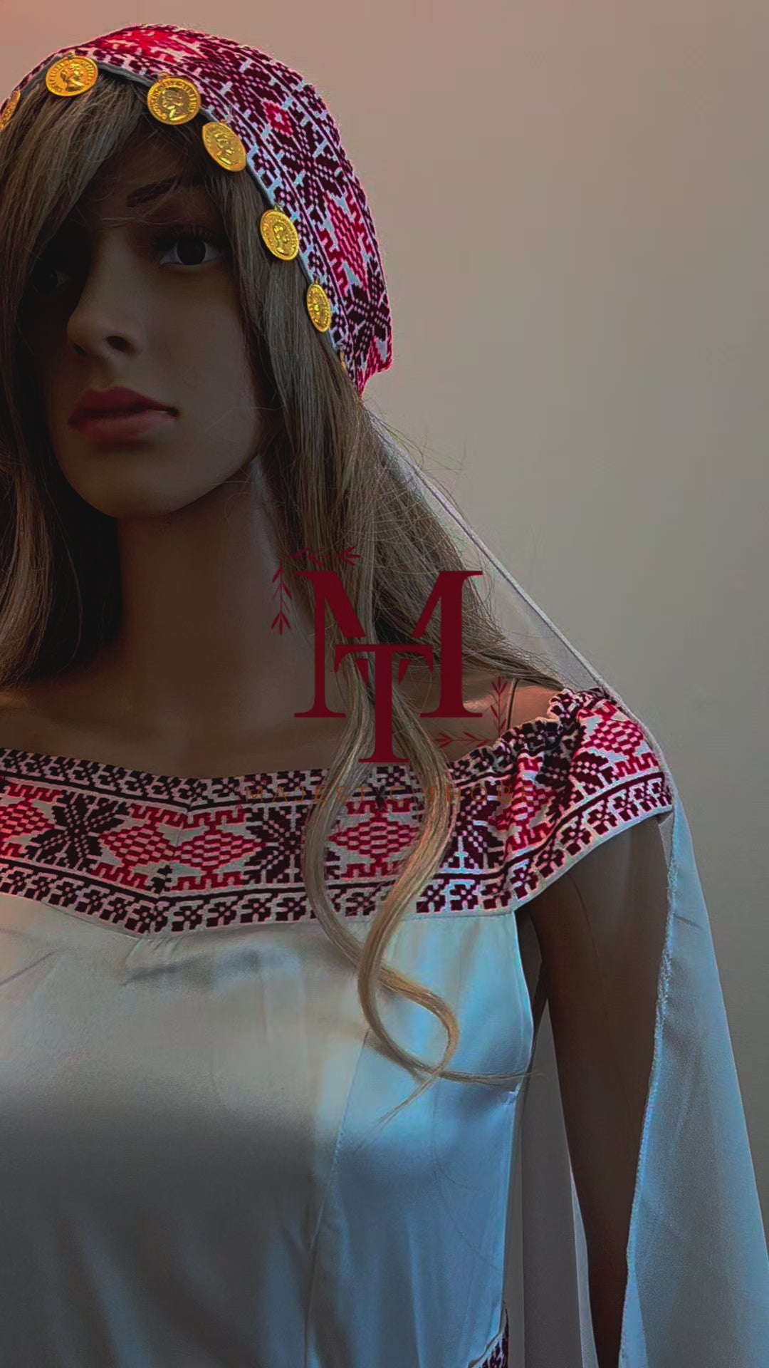 Yaffa Thobe - Blue and White Bridal sleeveless long Tail Thobe dress (Embroidered Tatreez Palestinian Jordanian Thobe)