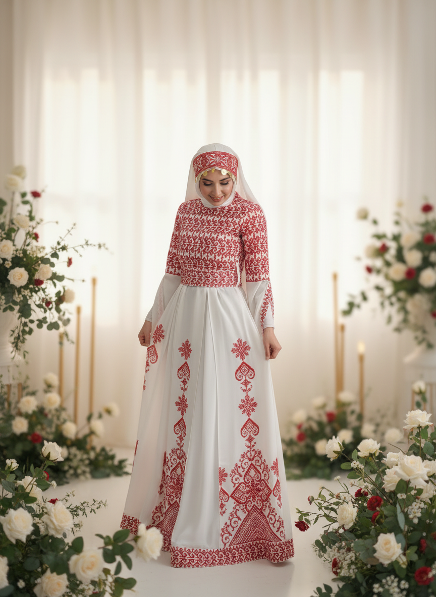 Bridal White & Red Full Top Embroidery With Extra long Sleeves (Zipper Back)