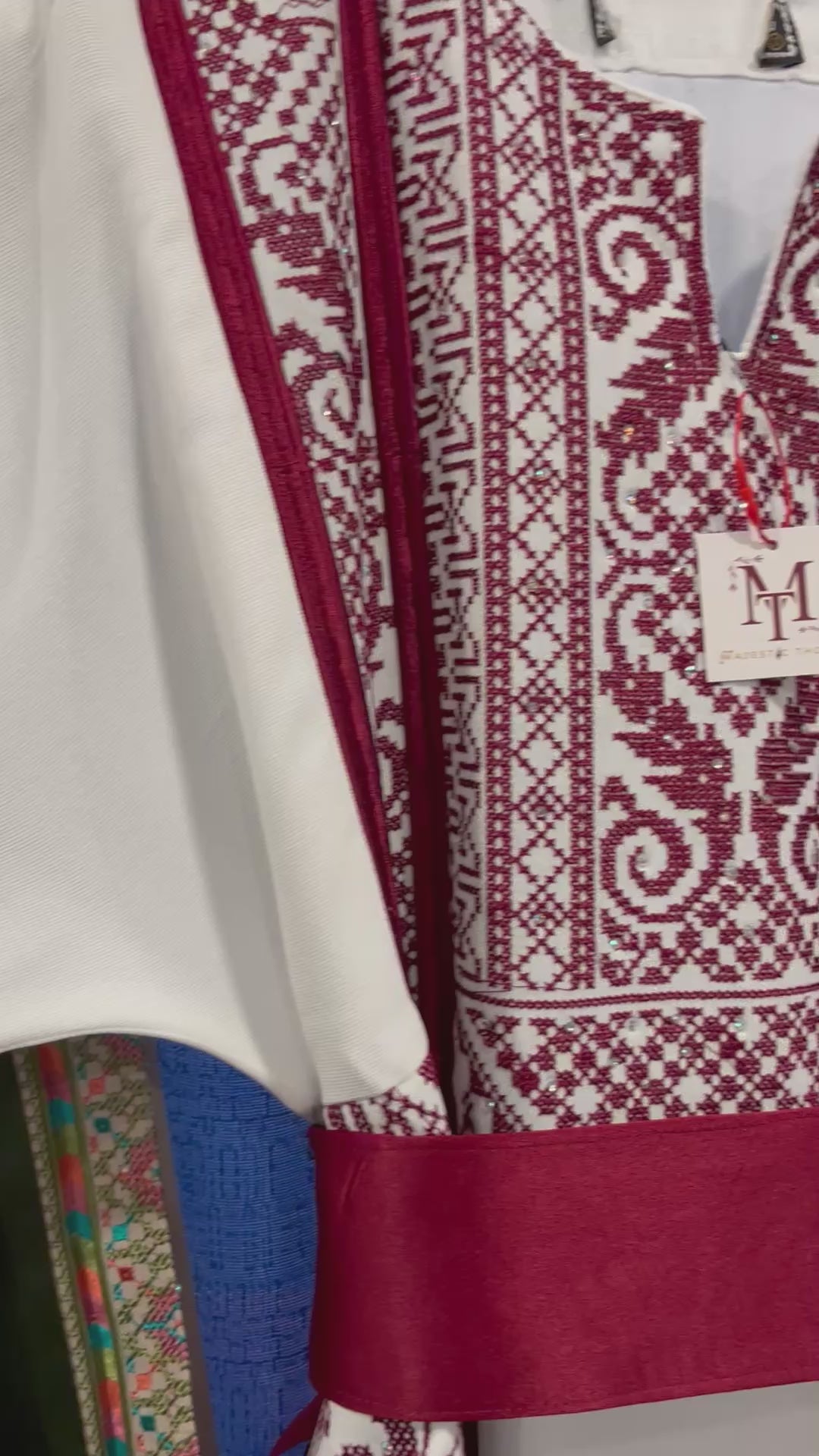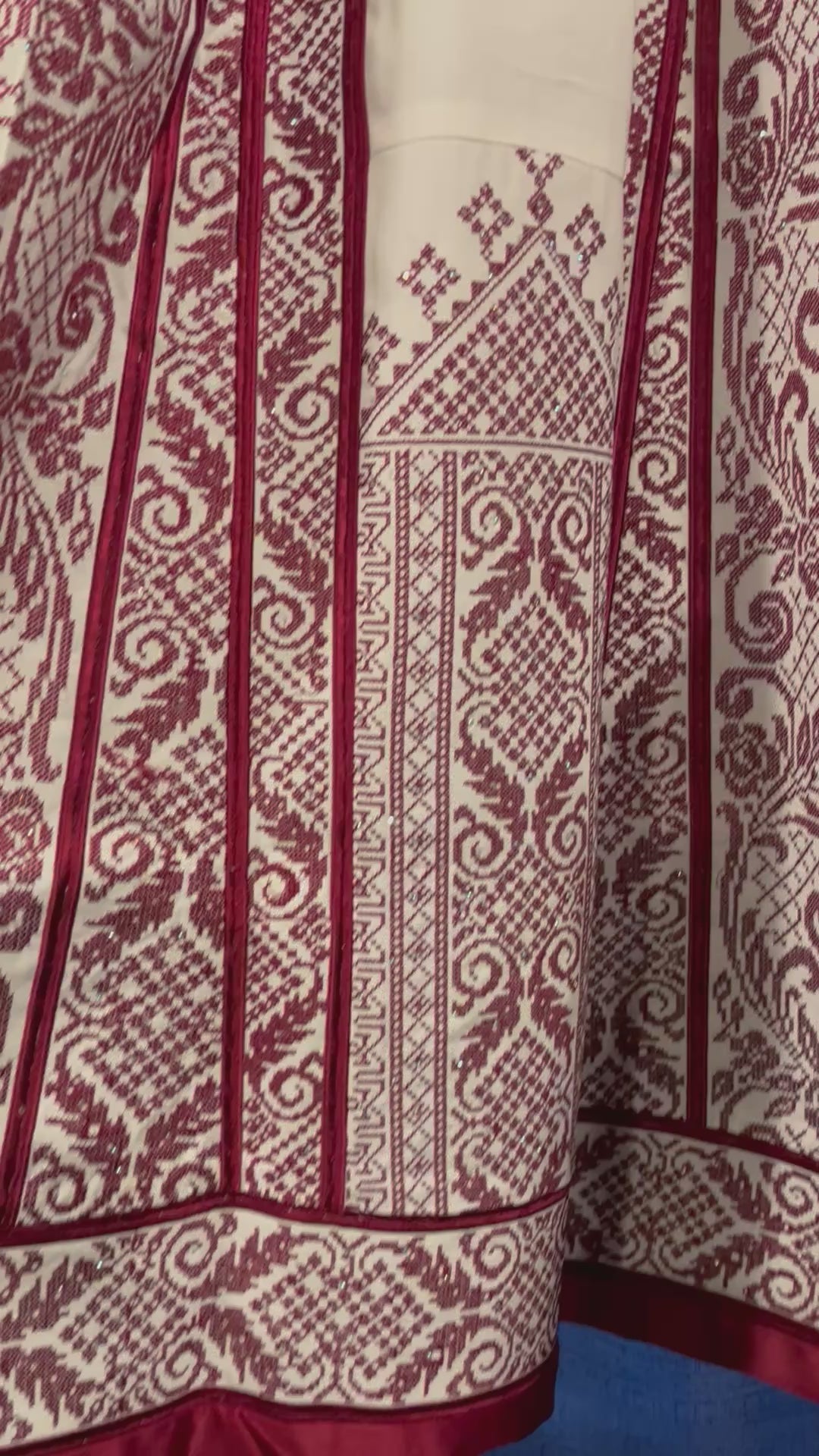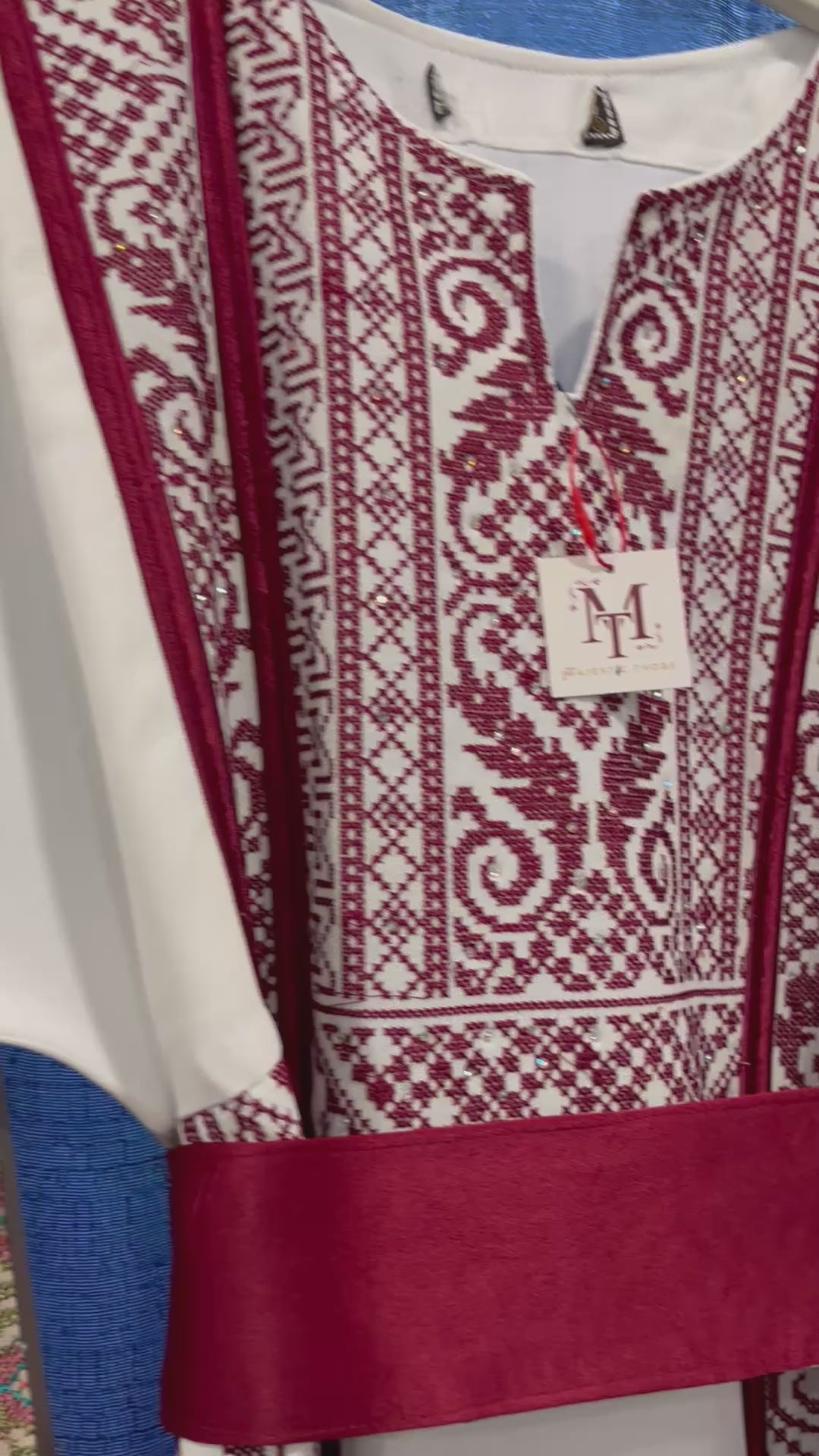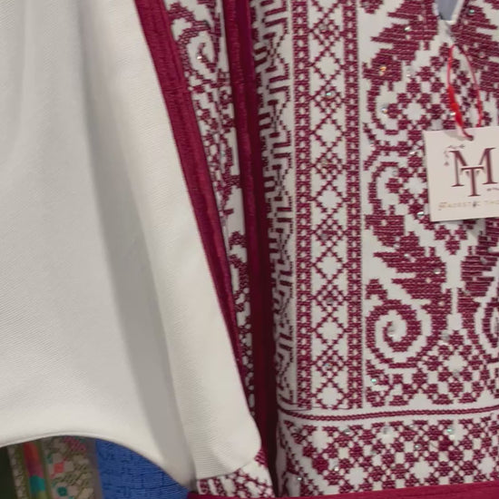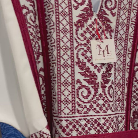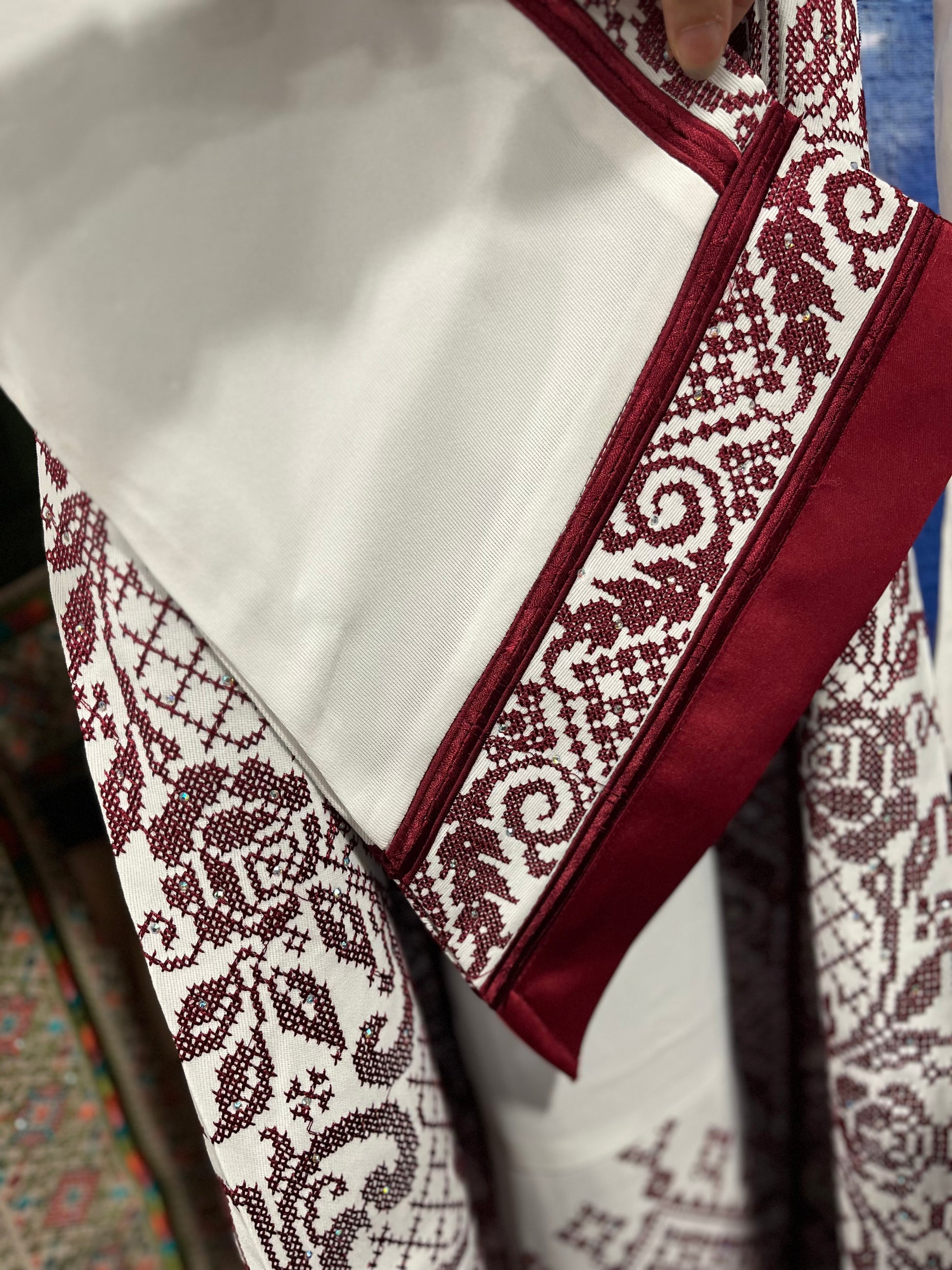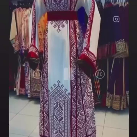 Jenin Thobe - White and Red traditional Bridal Thobe (Embroidered Tatreez Palestinian Jordanian Thobe)