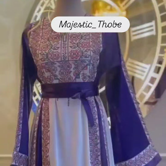 Purple With Flowers & Sparkle Traditional Long Sleeve Full Embroidered Palestinian Thobe/Dress