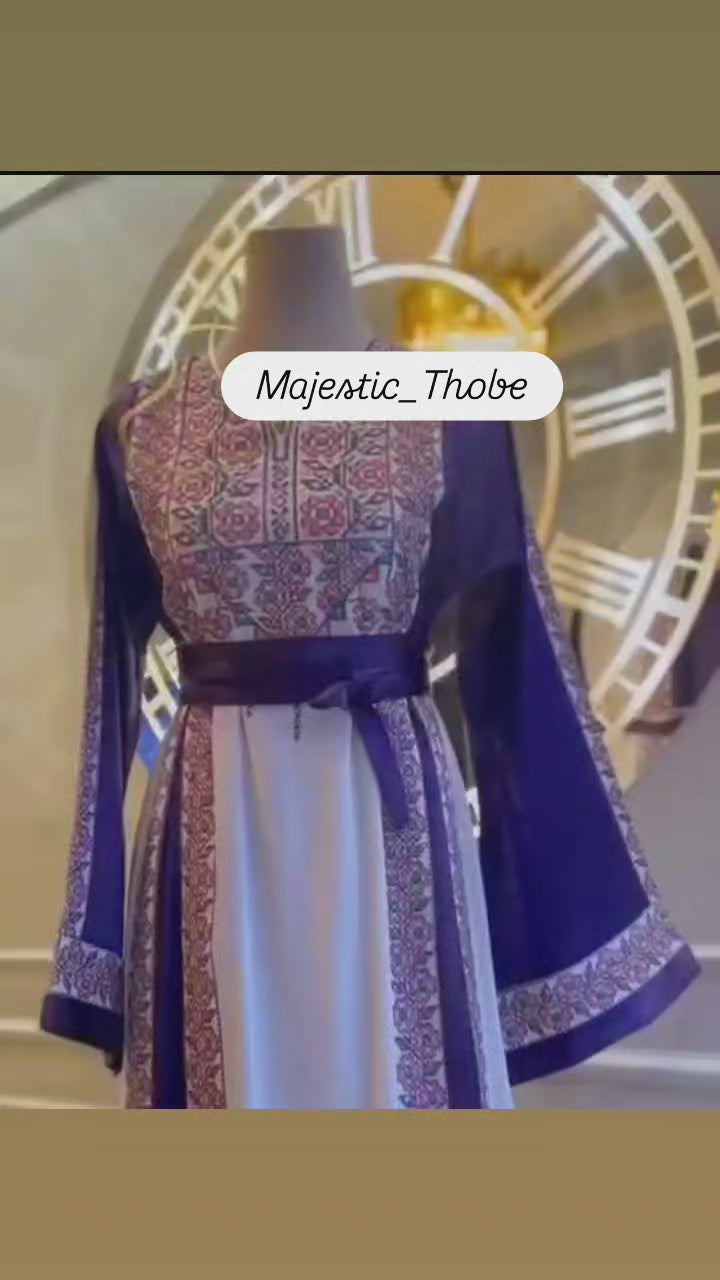 - NEW Collection Beige/Purple Diamond Long Full Embroidered Thobe.