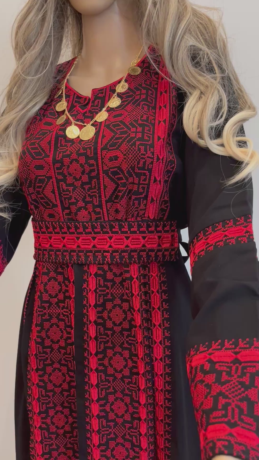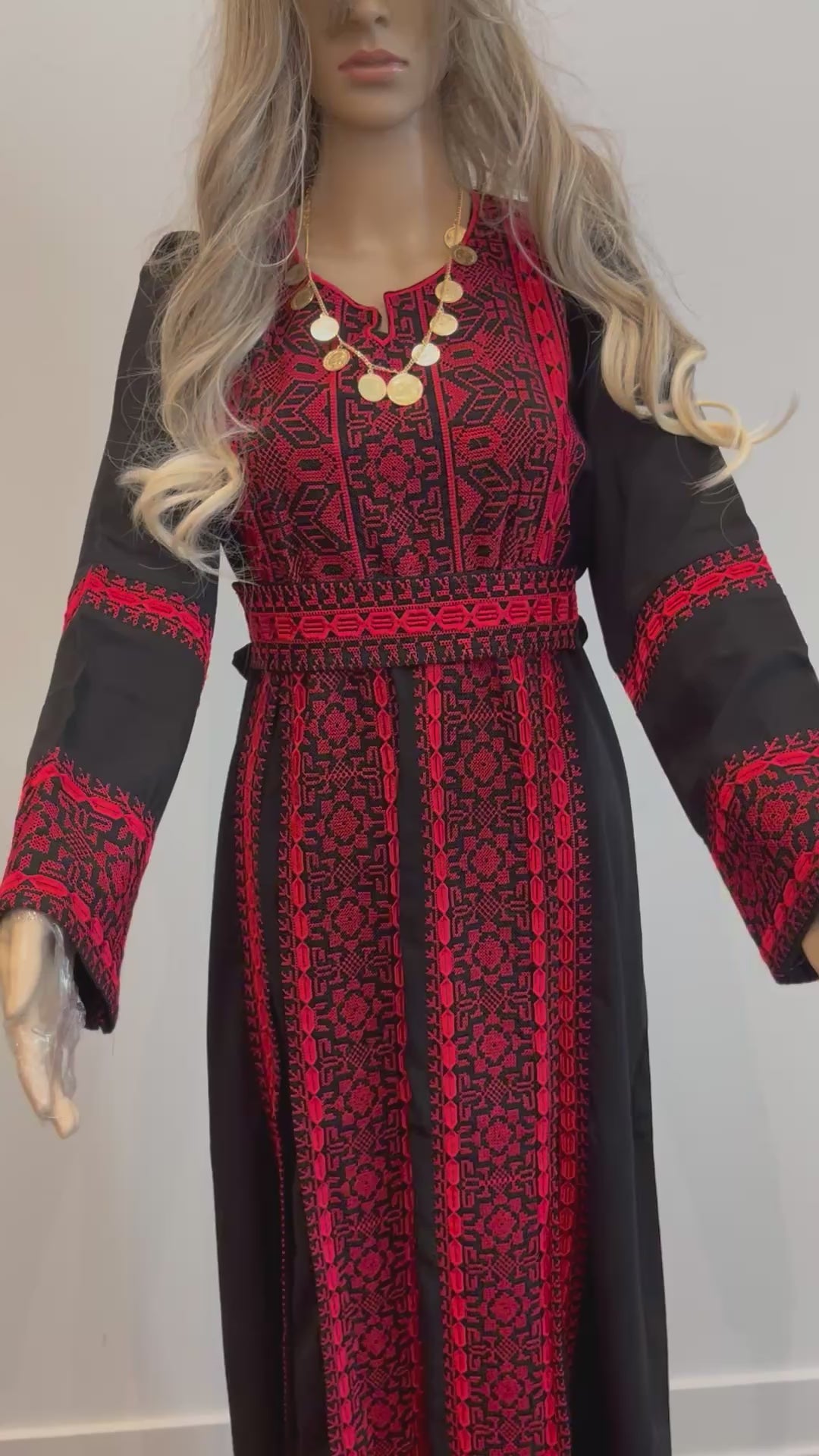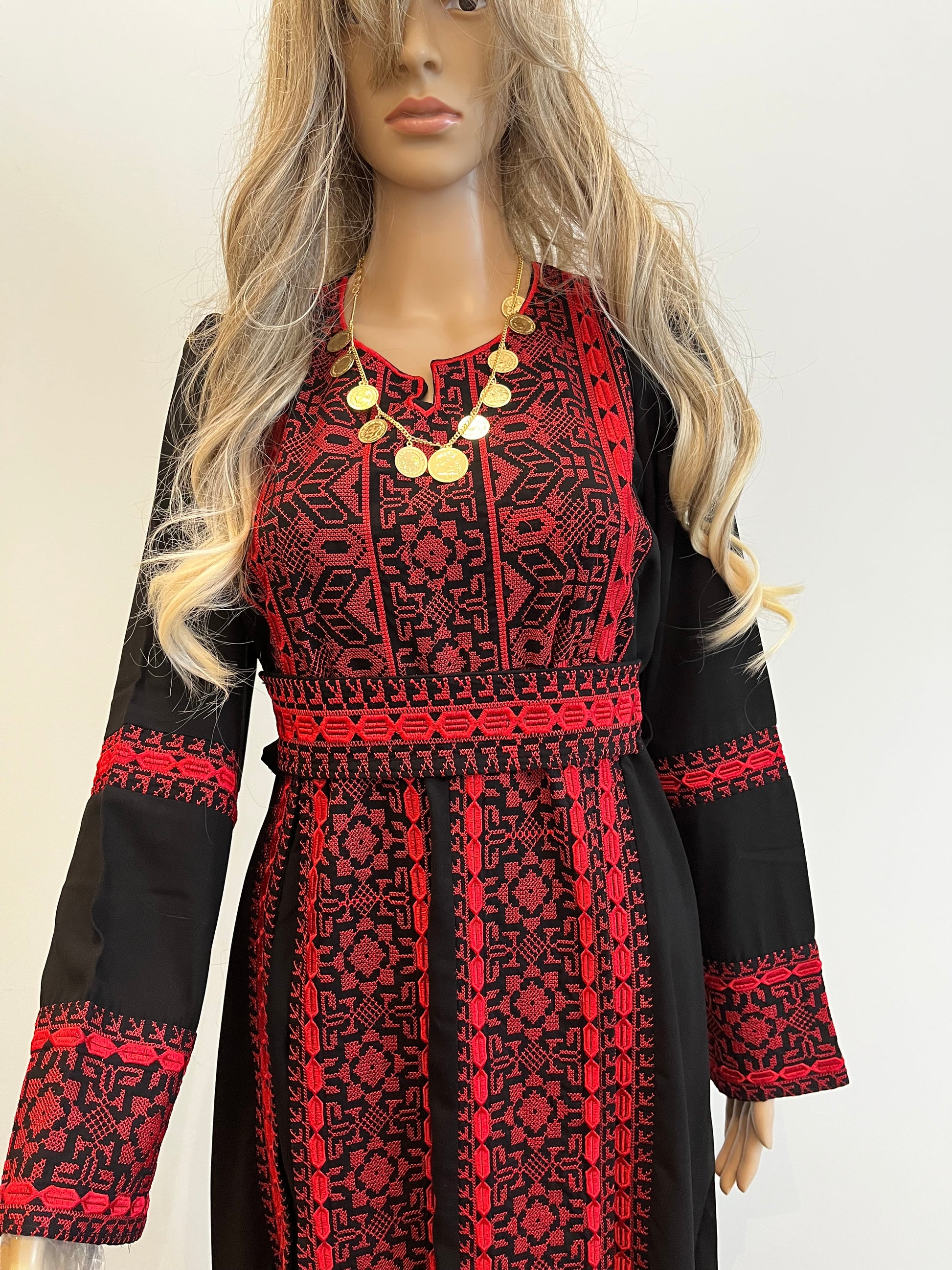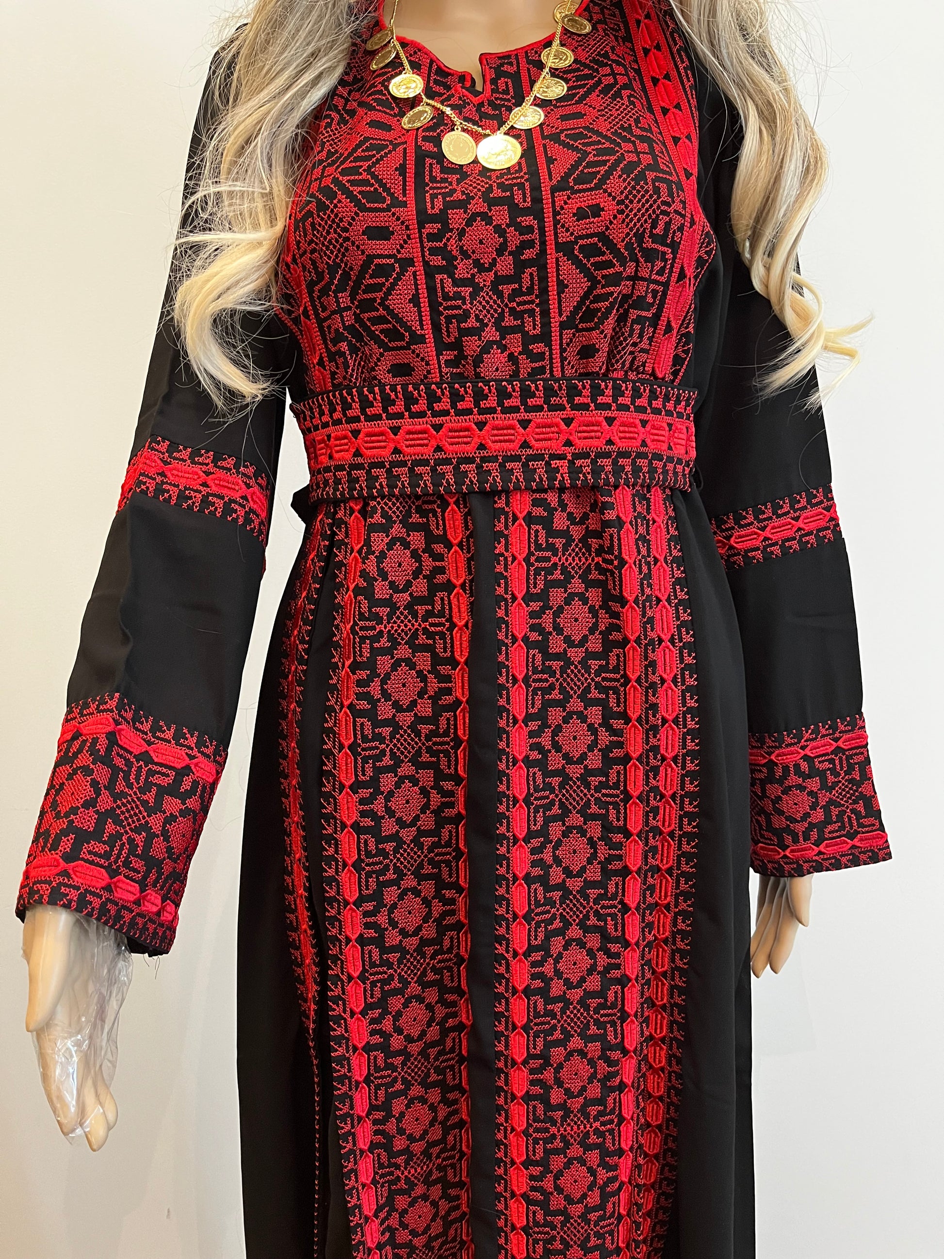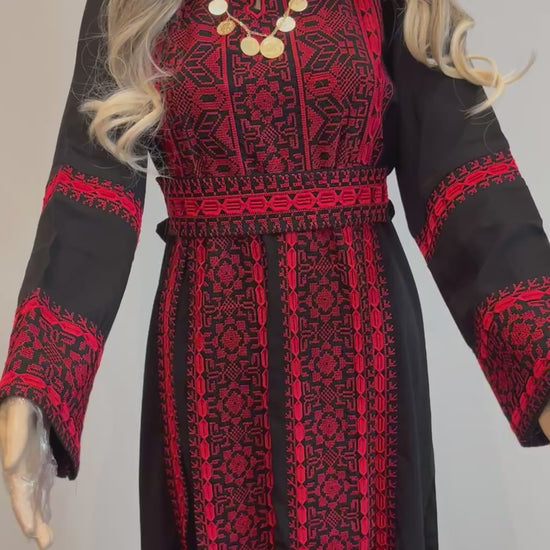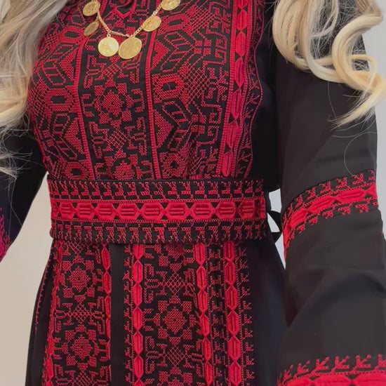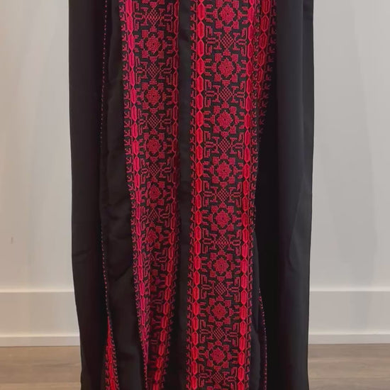 Salma Thobe Red & Black Traditional Thobe dress (Embroidered Tatreez Palestinian Jordanian Thobe)