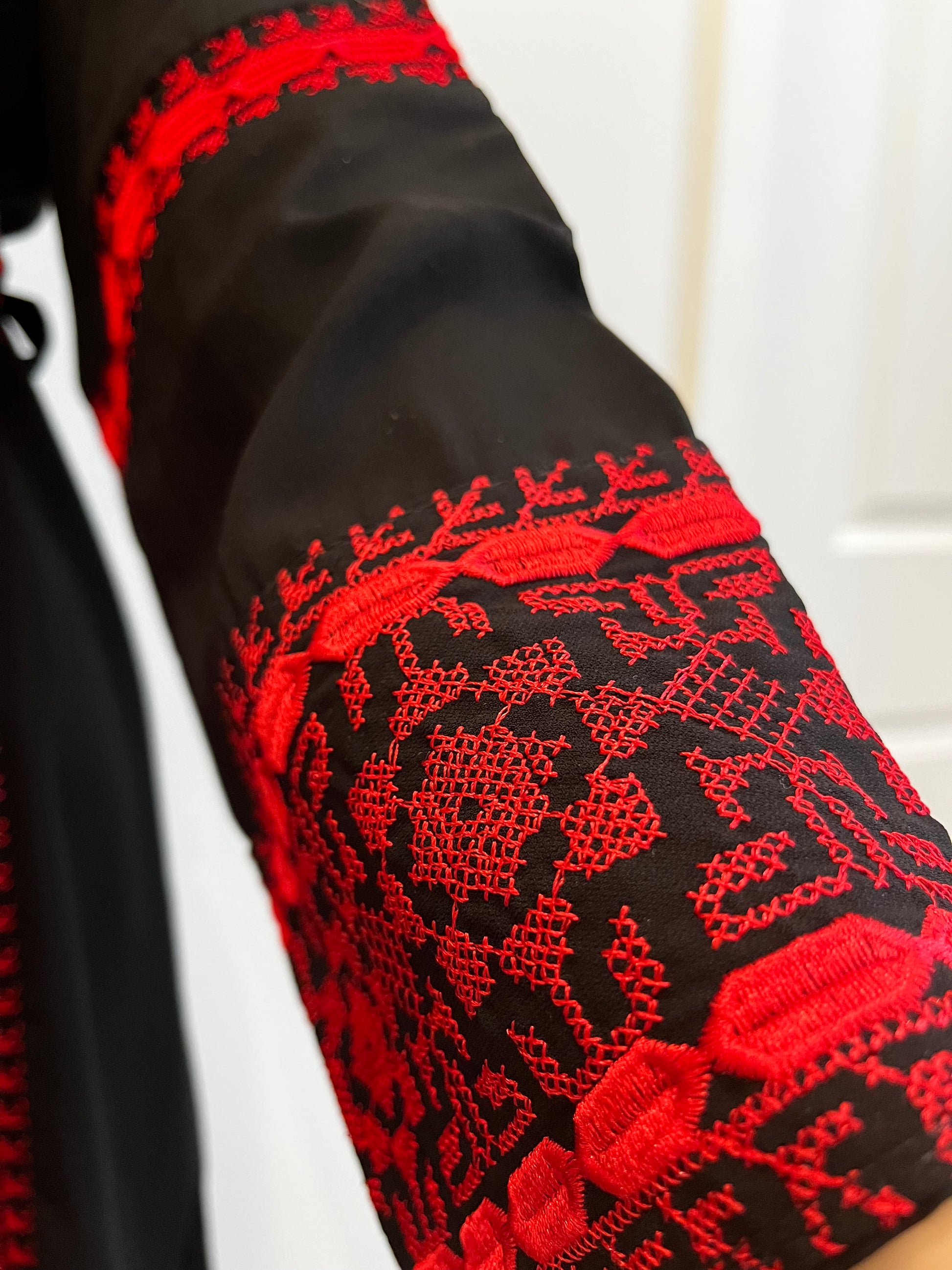 - Salma Thobe Red & Black Traditional Long Sleeve Embroidered Dress.