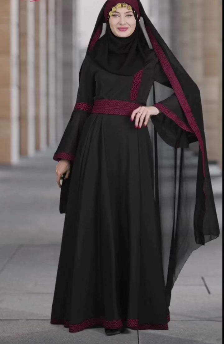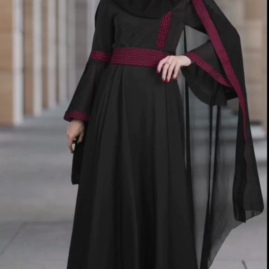 Renad - Black & Red With Flare Long Sleeve Modern Dress Thobe