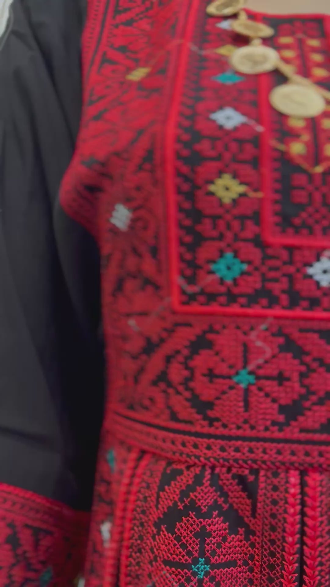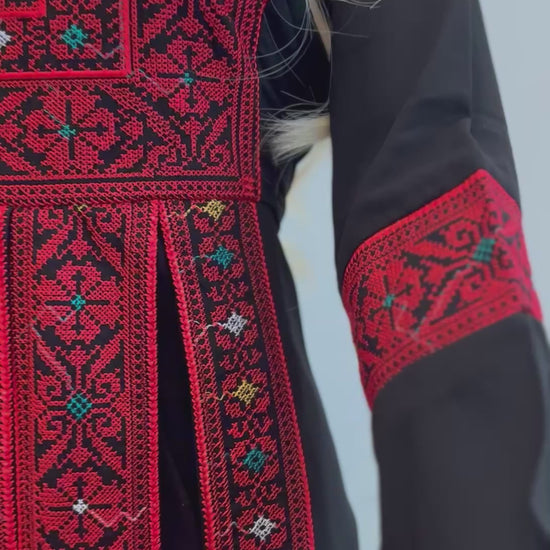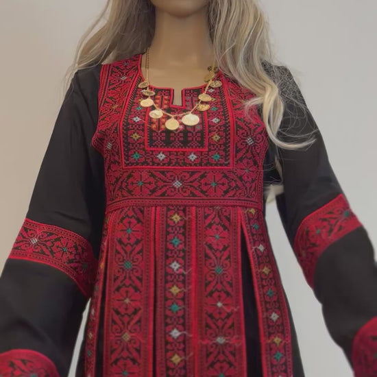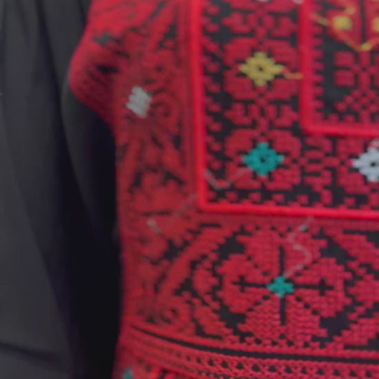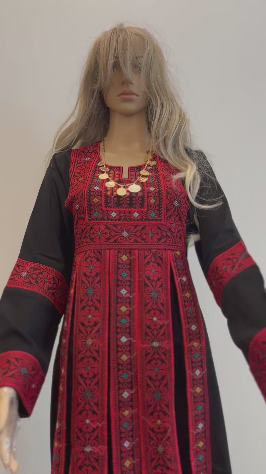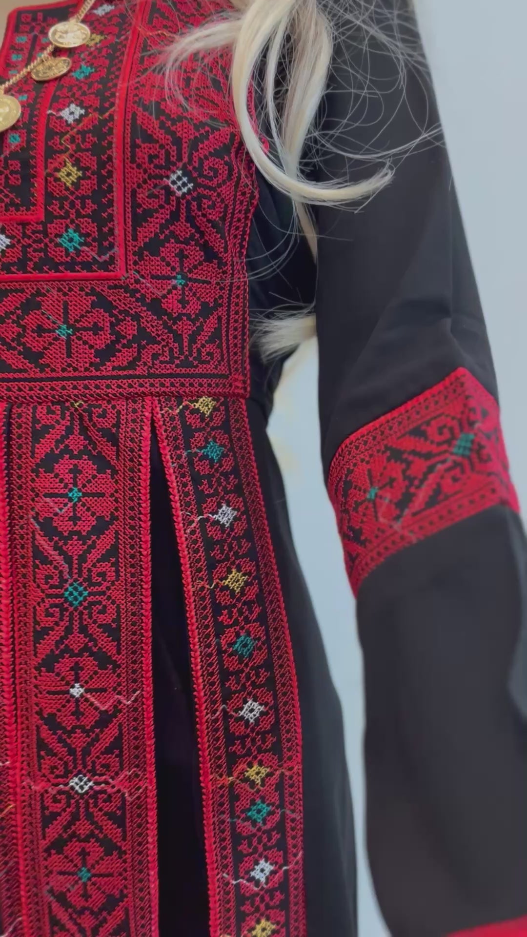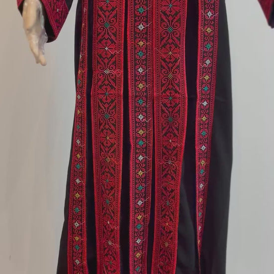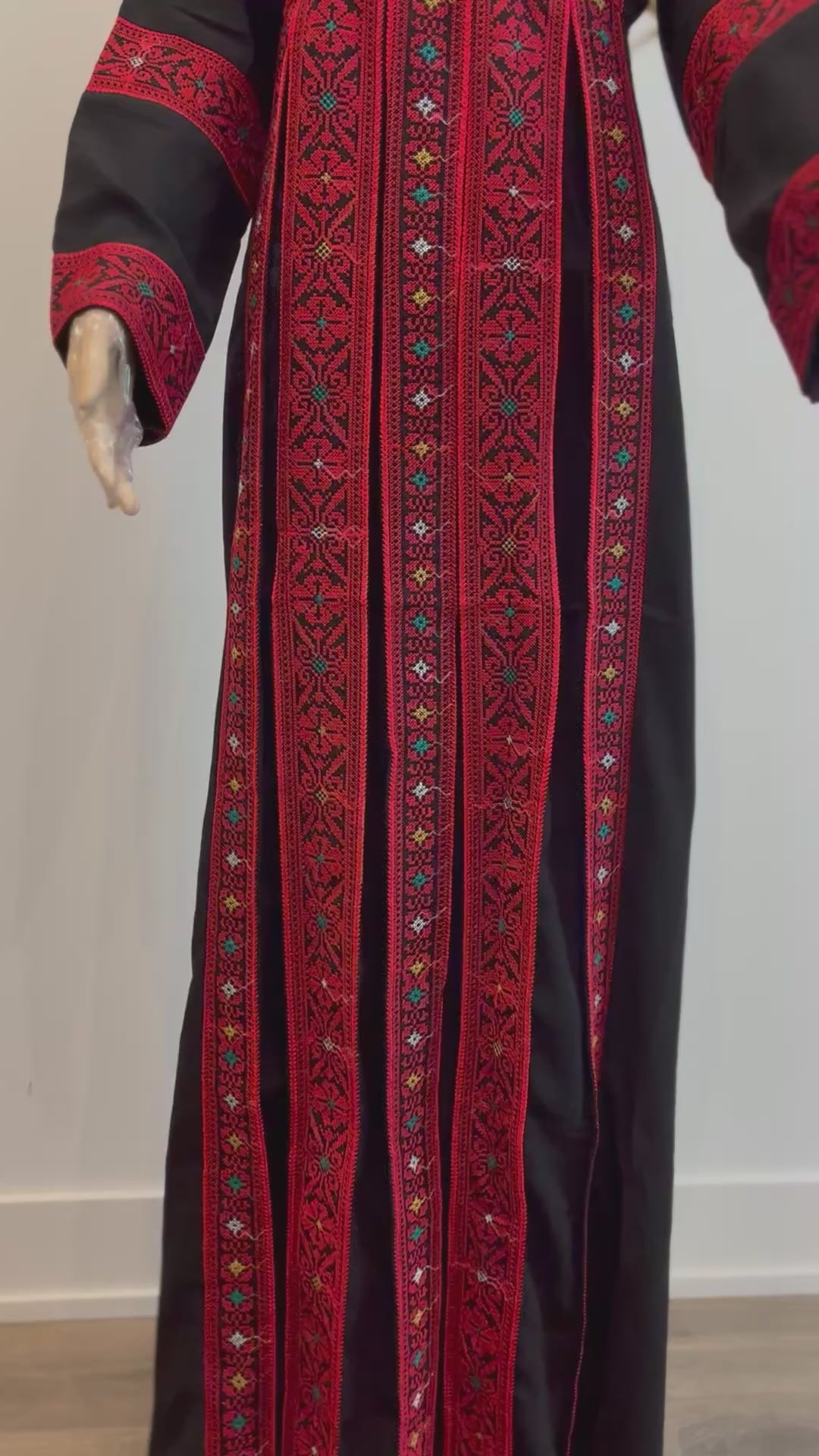 Mariam Red & Black Multicoloured Traditional Thobe Dress (Embroidered Tatreez Palestinian Jordanian Thobe)