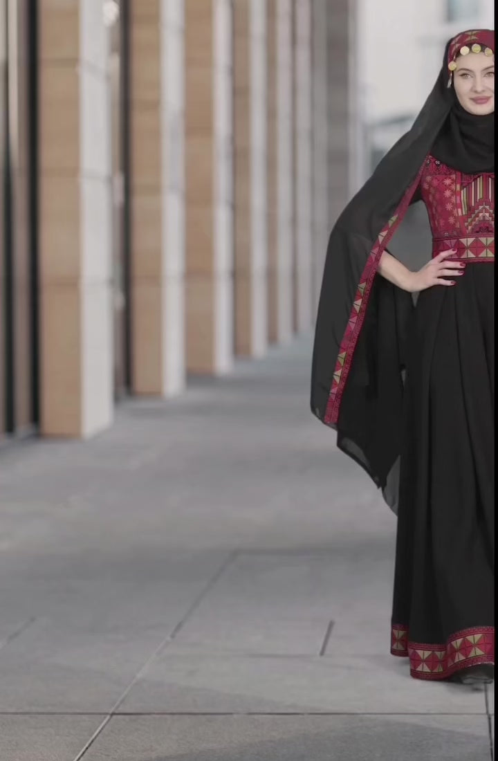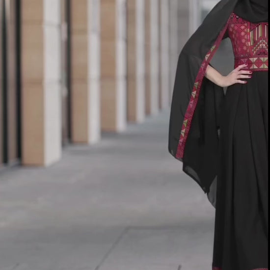 Sara - Black with Red Tatreez With Extra Long Sleeve Modern Dress Thobe