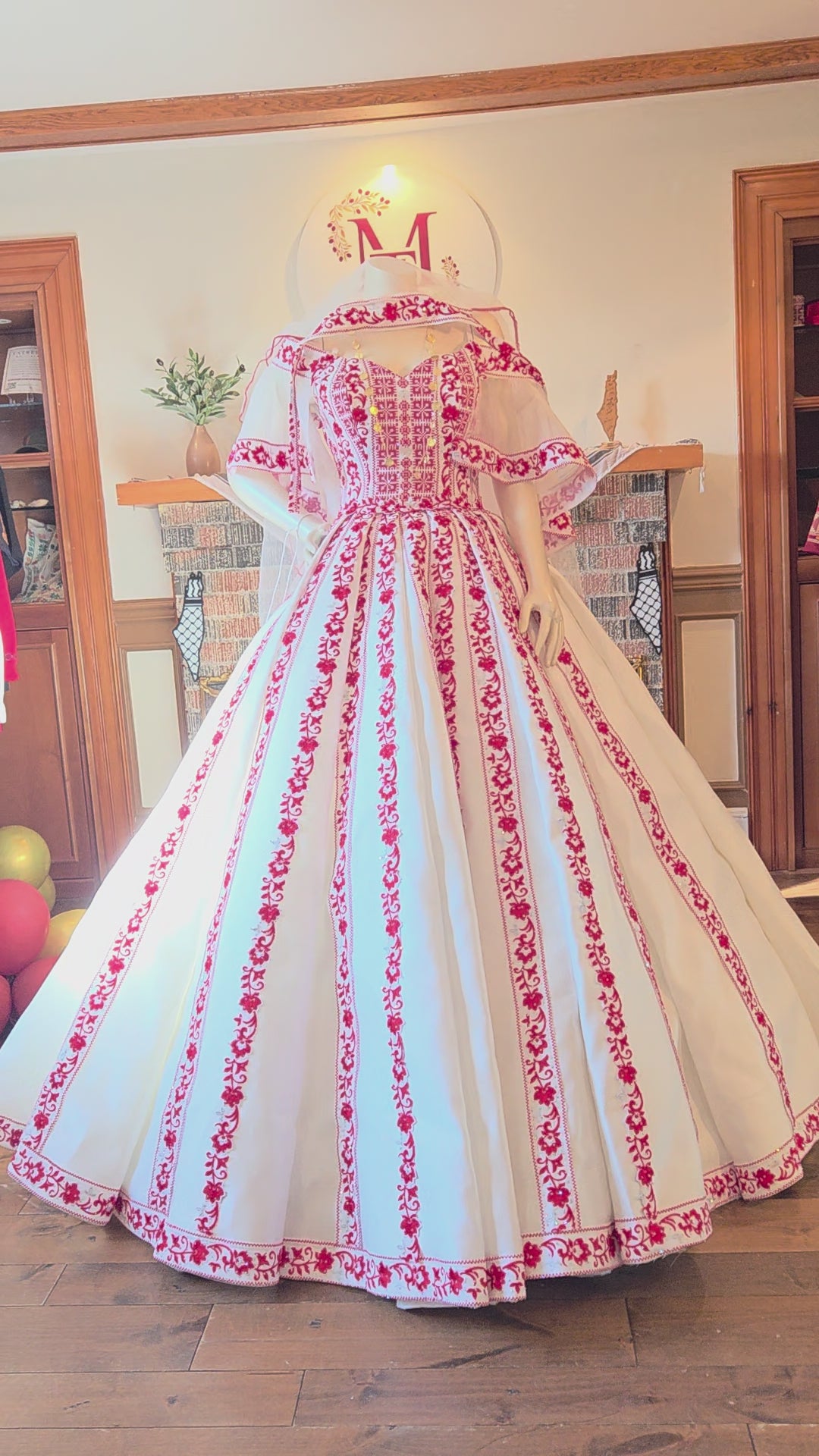 - فستان هنة للعروس باللونين الأحمر والأبيض